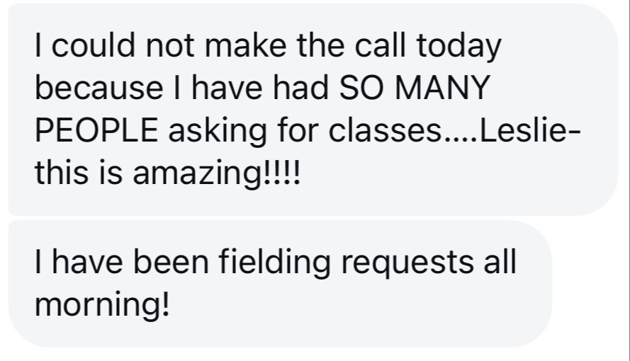 "Having a new business, the anxiety of "how does this work now" was my primary focus. I dove right in and April and May were my most successful months yet -- and 90% of my clients were new and found me on social media. I believe in Leslie!"